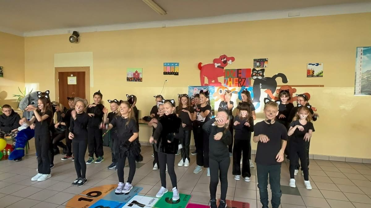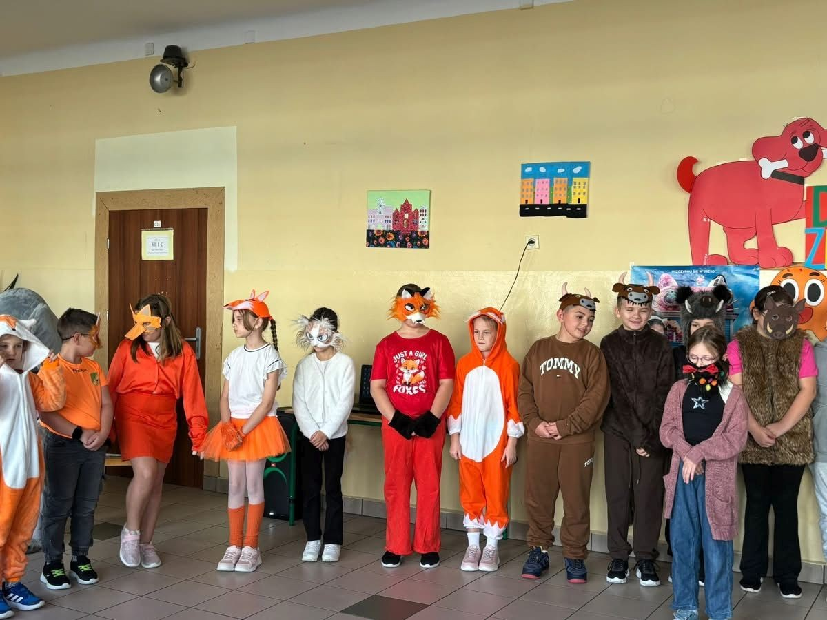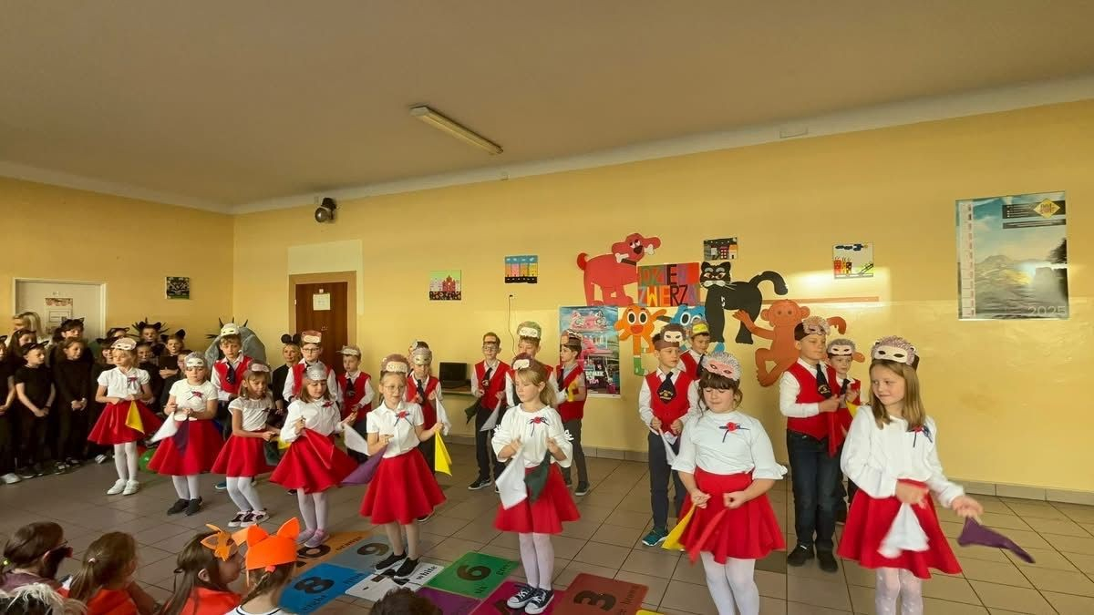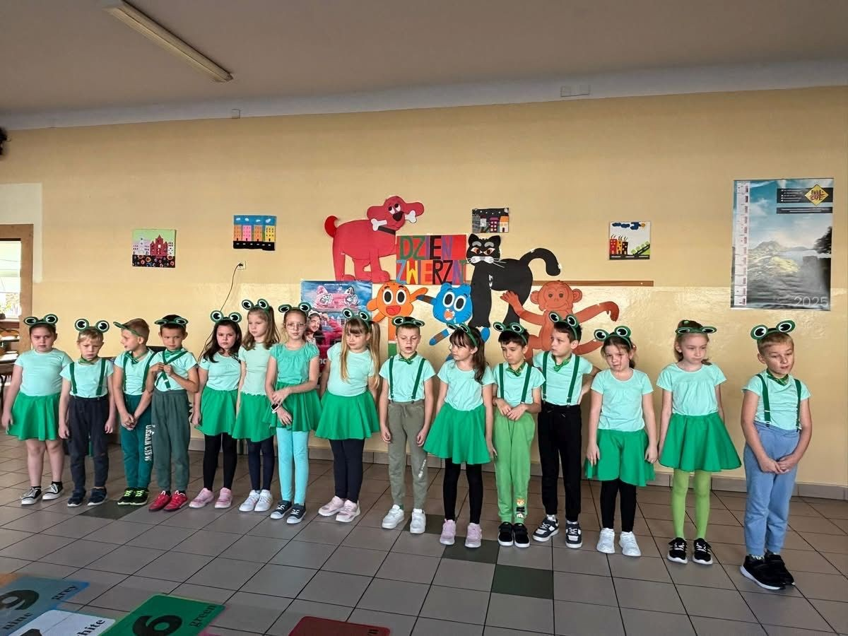 22 października 2025 r. w naszej szkole odbył się koncert, w którym klasy młodsze prezentowały piosenki o zwierzętach. Gościem spotkania była maskotka naszej szkoły Słoń King, którego dzieci z radością przywitały. Uczniowie dowiedzieli się wielu ciekawostek o zwierzętach, przygotowanych przez pomysłodawcę wydarzenia p. Jolantę Zamorę. Dziękujemy wszystkim nauczycielom i uczniom, którzy bardzo się zaangażowali i przyczynili się do wspaniałego muzycznego spotkania.
