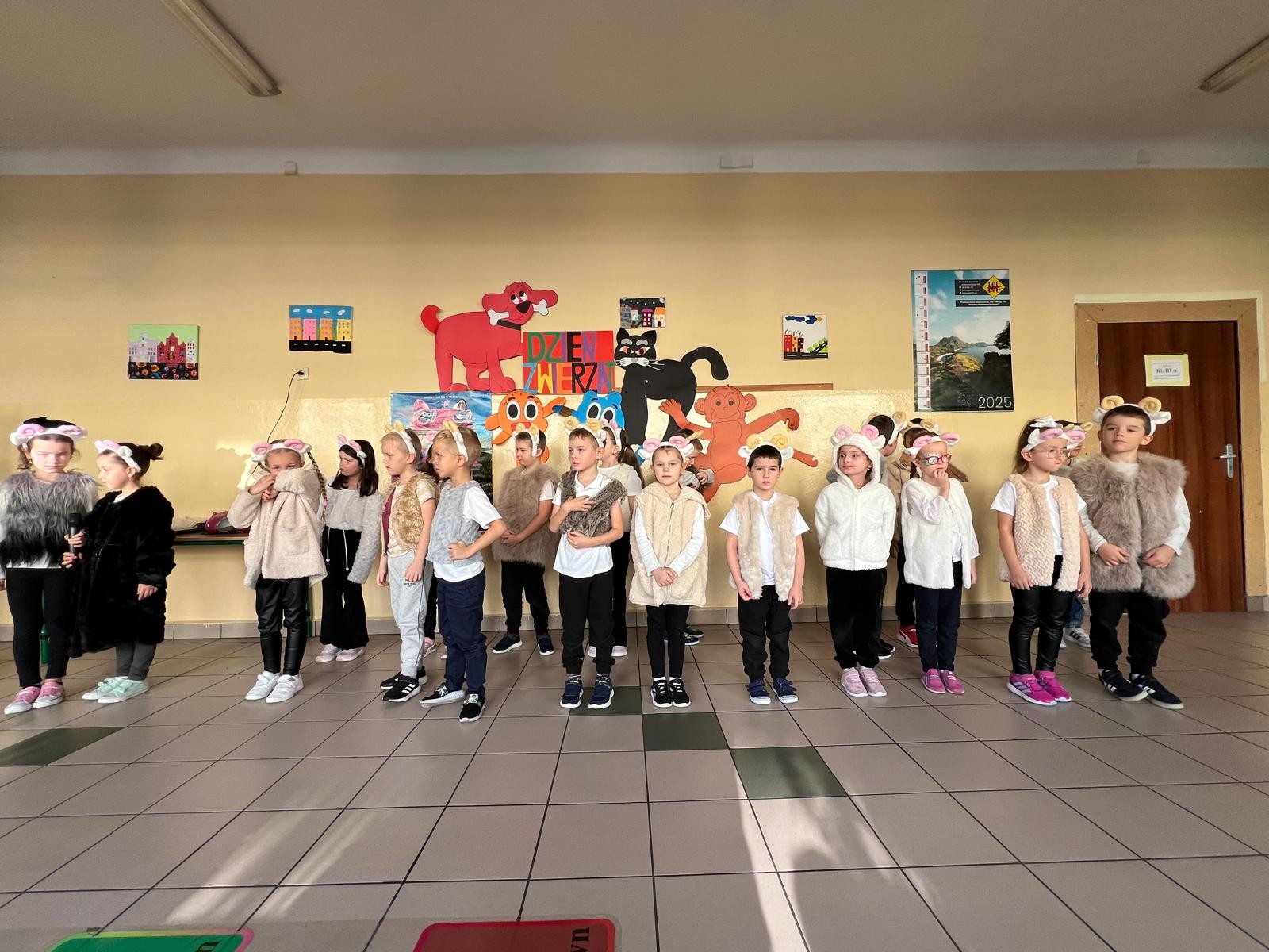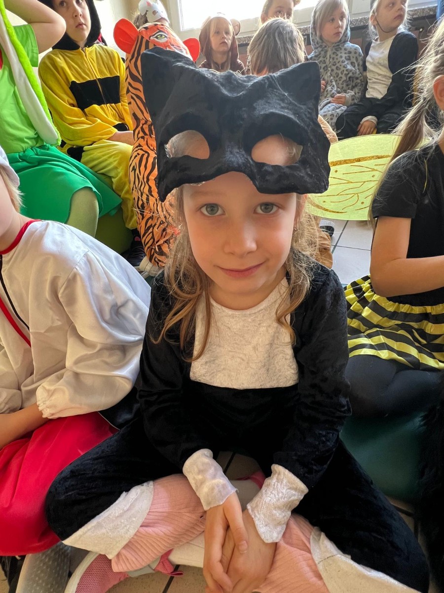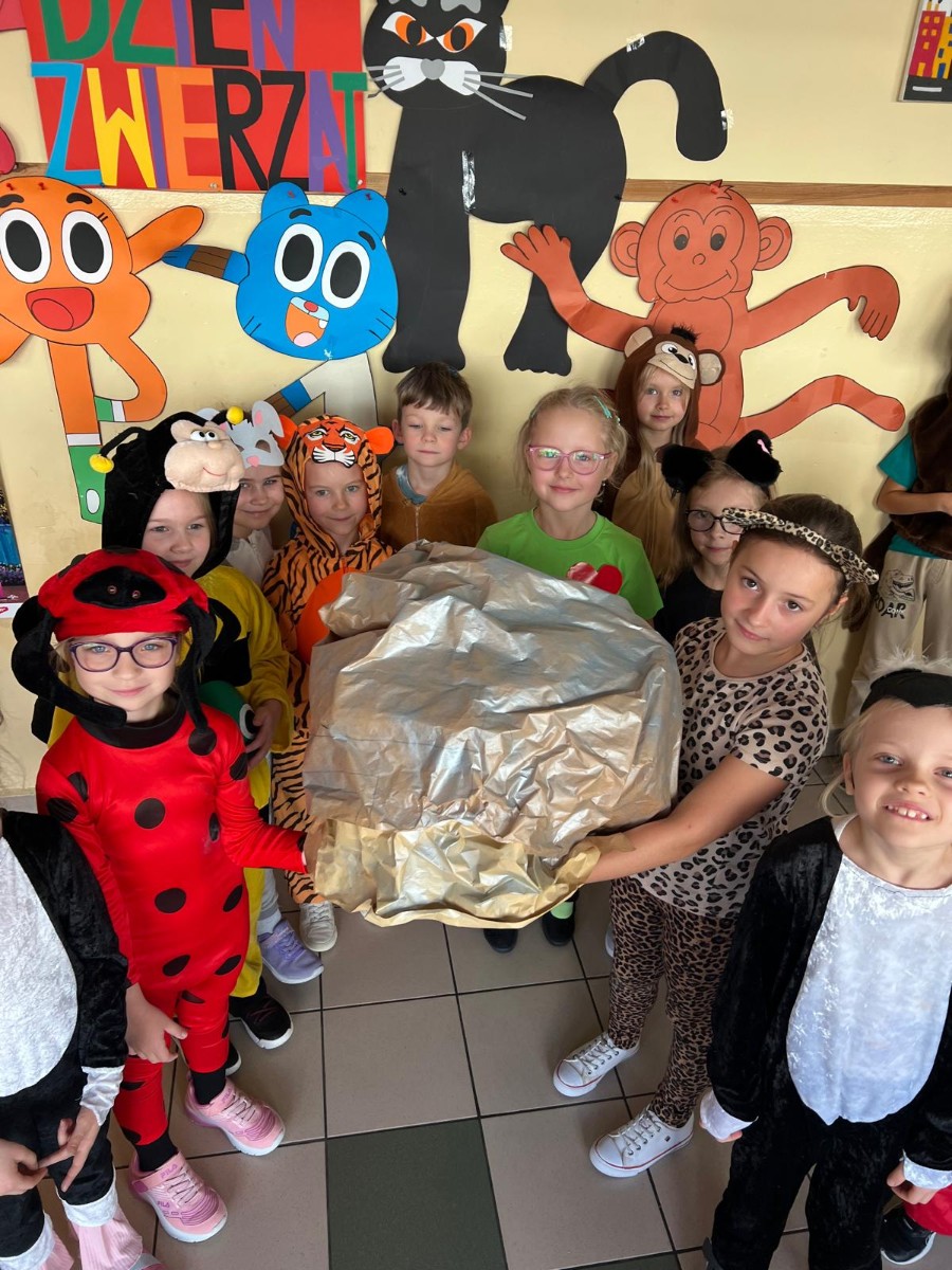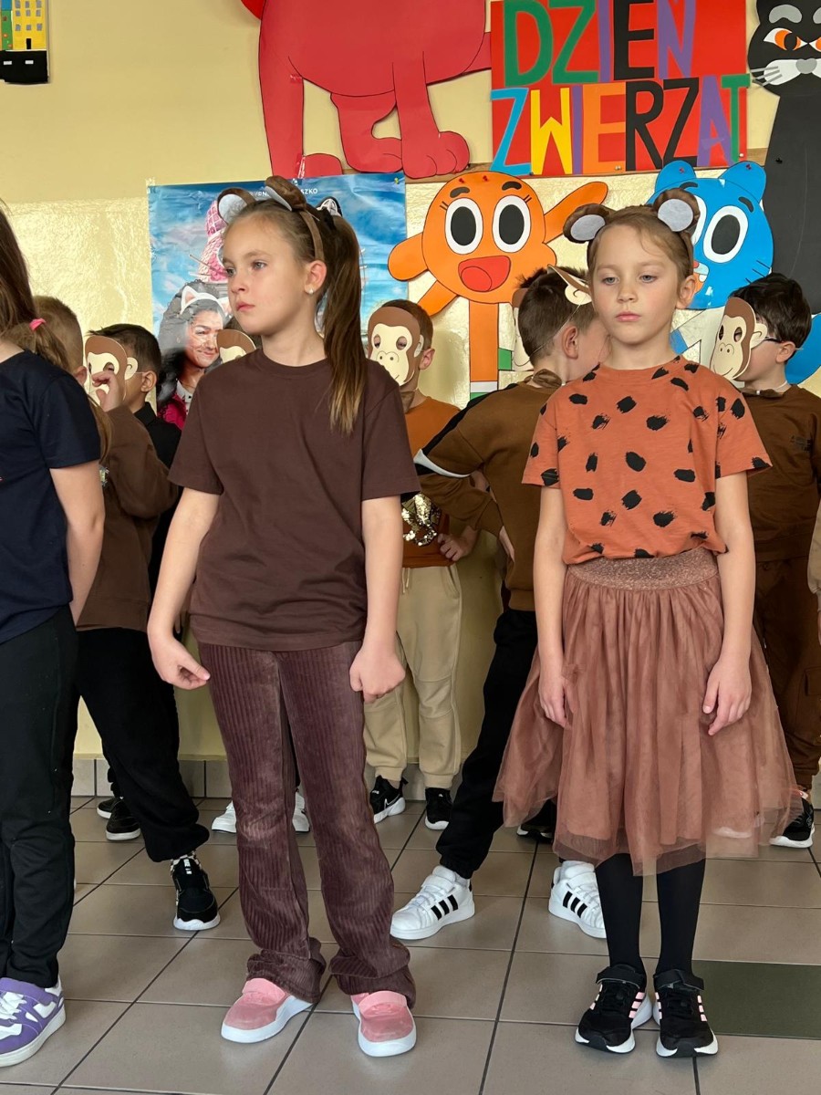 22 października 2025 r. w naszej szkole odbył się koncert, w którym klasy młodsze prezentowały piosenki o zwierzętach. Gościem spotkania była maskotka naszej szkoły Słoń King, którego dzieci z radością przywitały. Uczniowie dowiedzieli się wielu ciekawostek o zwierzętach, przygotowanych przez pomysłodawcę wydarzenia p. Jolantę Zamorę. Dziękujemy wszystkim nauczycielom i uczniom, którzy bardzo się zaangażowali i przyczynili się do wspaniałego muzycznego spotkania.
