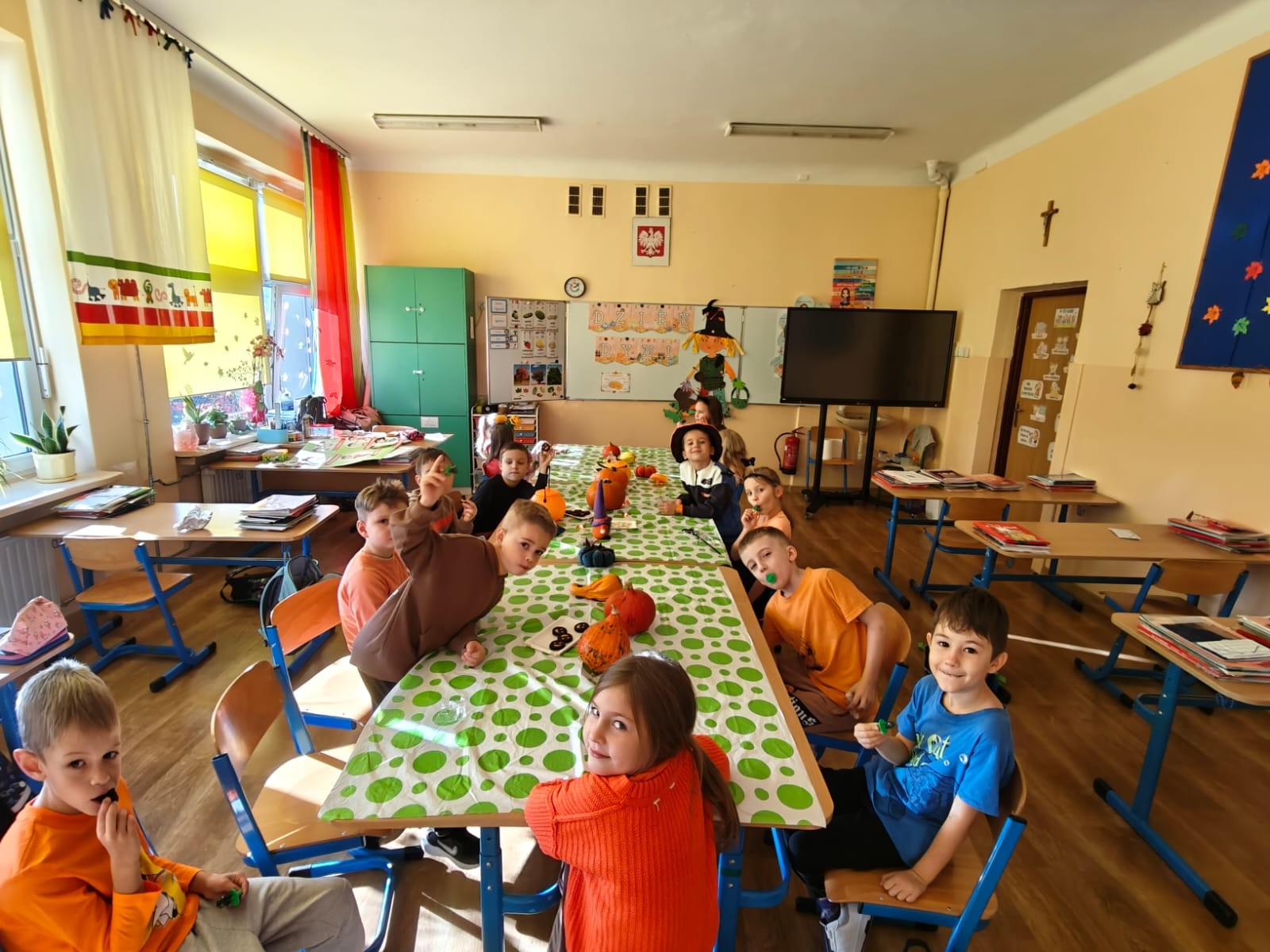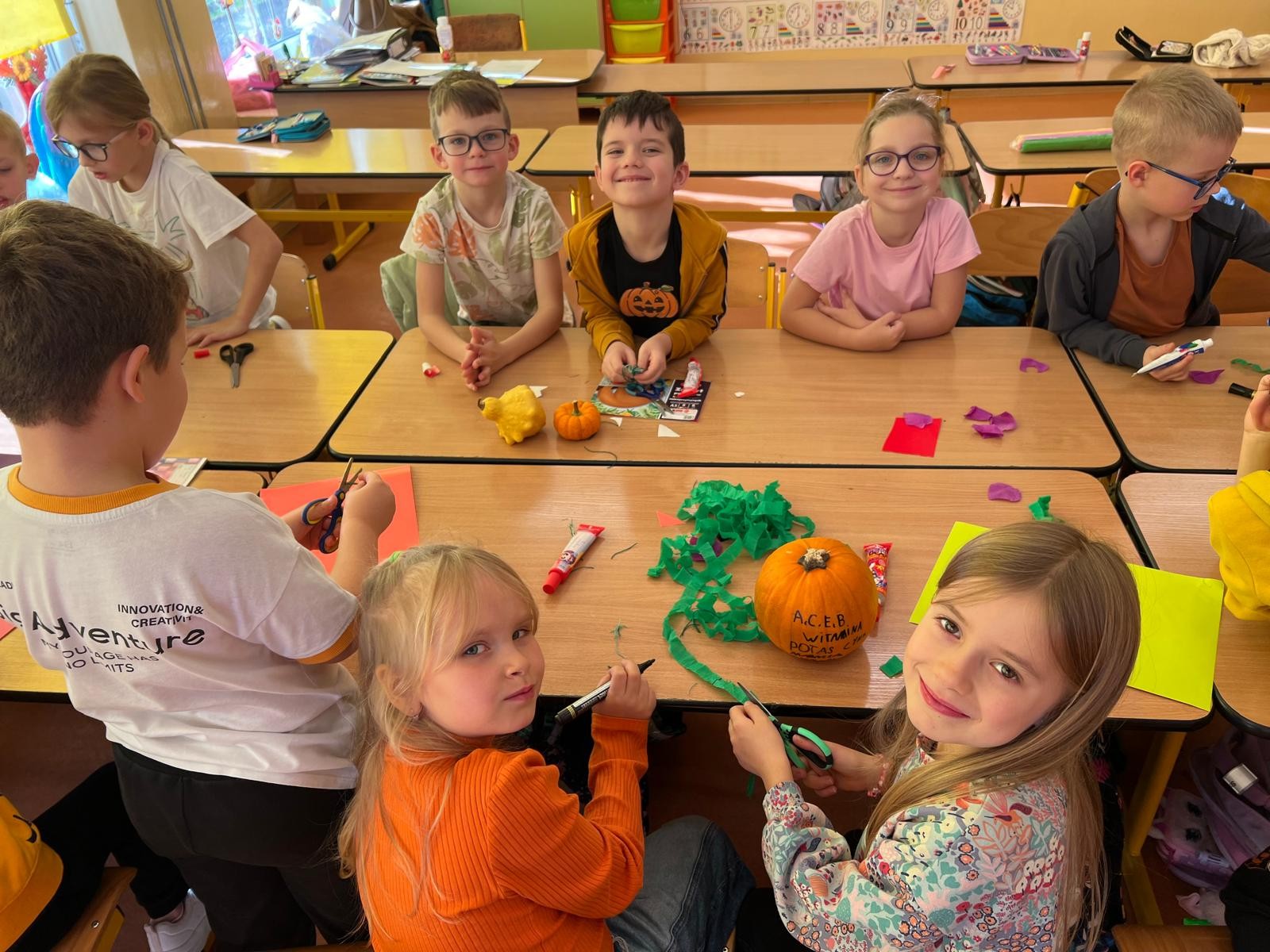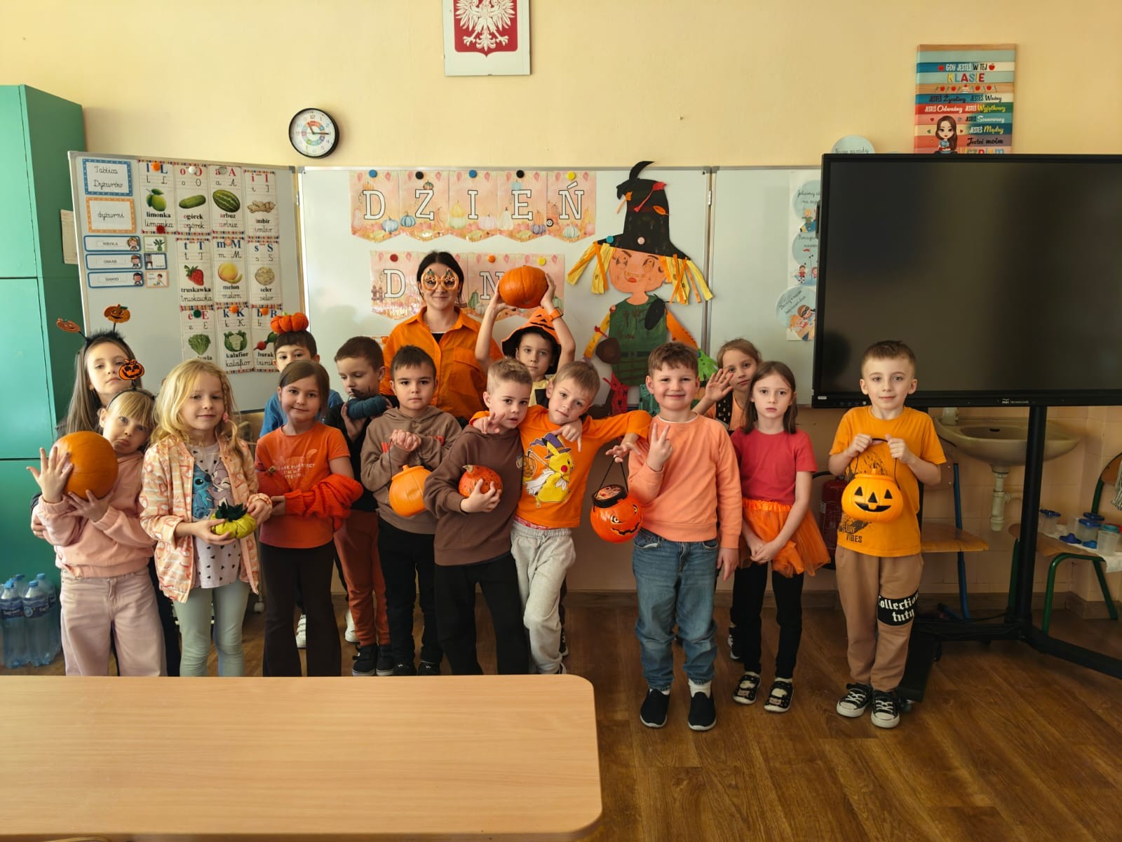W klasach królował kolor pomarańczowy, a sale lekcyjne ozdobione były pracami plastycznymi. Uczniowie poznali ciekawostki o dyni-odmiany, wartości odżywcze i zastosowanie w kuchni.