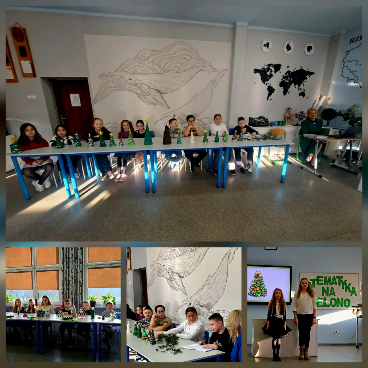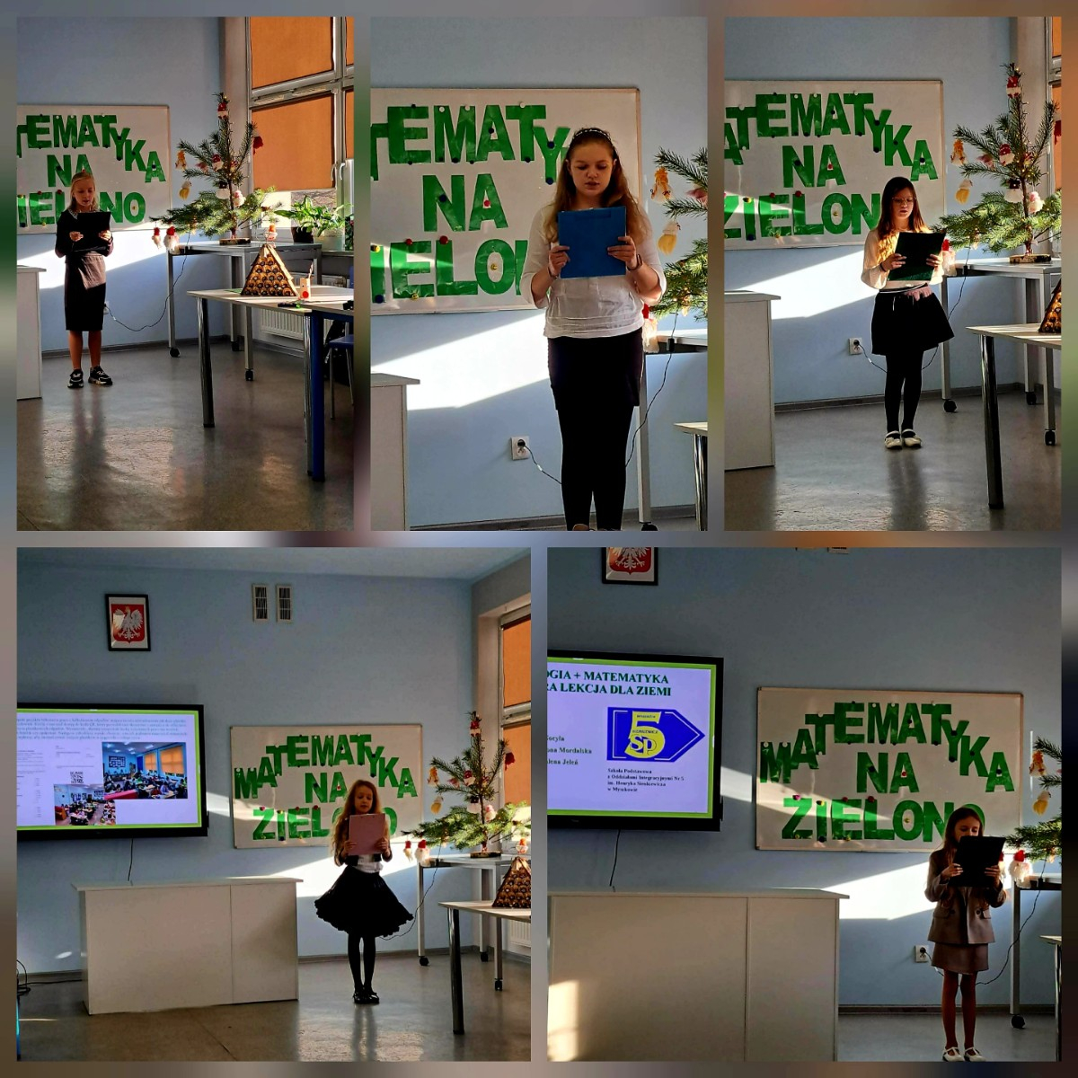 „Matematyka na zielono" to tytuł kampanii edukacyjnej mFundacji, która łączy matematykę z ekologią, pokazując, jak liczby pomagają zrozumieć zmiany klimatyczne i rolę człowieka w ochronie planety, by promować świadome, ekologiczne wybory. Z tej okazji nauczyciele: Elżbieta Gocyła (j. Polski), Aldona Mordalska (matematyka), Magdalena Jeleń (przyroda) wraz z uczniami klasy 4a zrealizowały projekt edukacyjny „O choince matematycznie i ekologicznie”