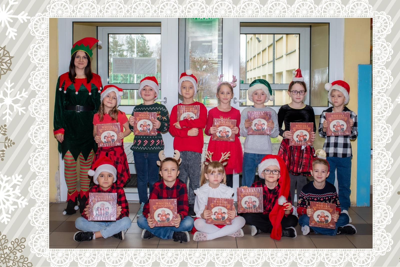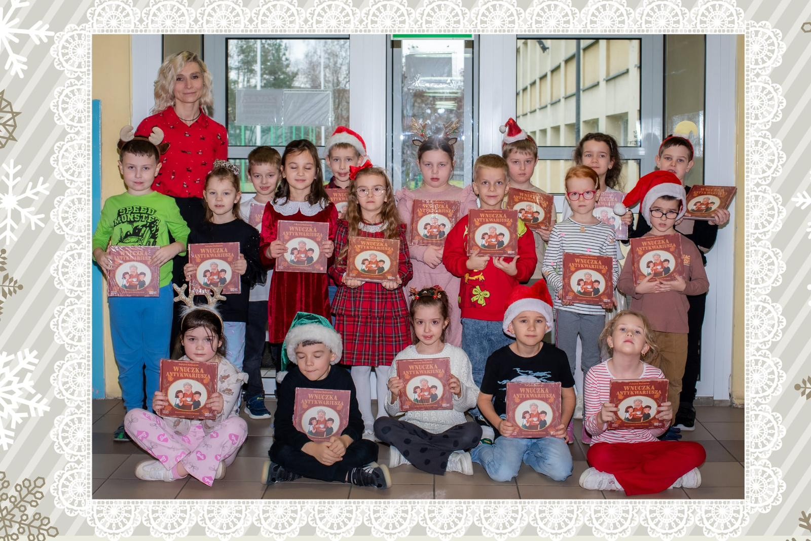 W naszej szkole już po raz kolejny przeprowadzono ogólnopolską akcję czytelniczą Ministerstwa Kultury i Dziedzictwa Narodowego oraz Instytutu Książki, w ramach której pierwszoklasiści otrzymali książkę „Wnuczka antykwariusza” autorstwa Justyny Bednarek. Inicjatywa jest częścią programu „Mała książka -wielki człowiek”, mająca na celu promocję czytelnictwa wśród najmłodszych uczniów. Podczas zajęć nauczyciele biblioteki opowiedzieli dzieciom o znaczeniu książek i czytania oraz o tym, jak ważne są historie rodzinne. Wydarzenie odbyło się w atmosferze zbliżających się Świąt Bożego Narodzenia i było połączone z wręczeniem dzieciom świątecznego prezentu -Wyprawki Czytelniczej.