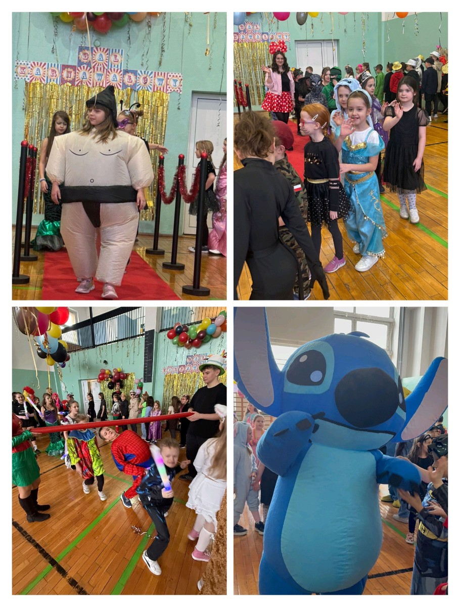 Bal karnawałowy dla klas 1-3, który odbył się w naszej szkole dostarczył przedszkolakom i uczniom wielu niesamowitych wrażeń. Spacer po czerwonym dywanie, super zabawa z maskotkami, taneczne popisy wprawiły wszystkich uczestników we wspaniały humor. Zabawę i animacje przygotowały: p. Maria Kęsy, p. Marlena Pompa i p. Jolanta Zamora.