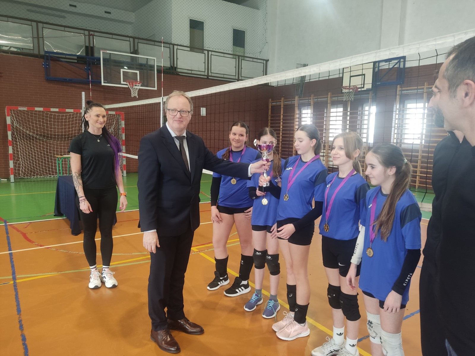 W dniu 11.02.26 na hali sportowej w Szkole Podstawowej im. W. Szafera w Żarkach odbył się Międzyszkolny Turniej Piłki Siatkowej w kategorii "trójek". W zawodach udział brało 8 zespołów z Myszkowa, Żarek oraz z Zawiercia. Nasza drużyna z kompletem zwycięstw wygrywa cały turniej. Serdecznie gratulujemy sukcesu naszym zawodniczkom.