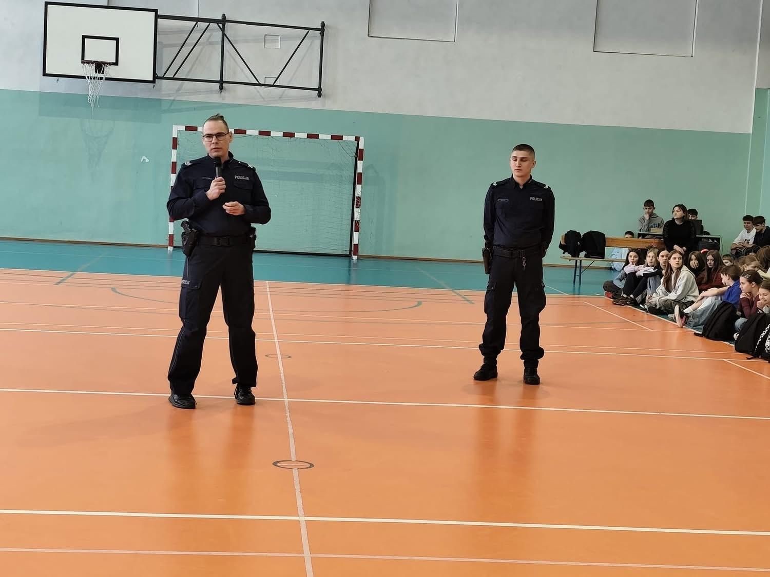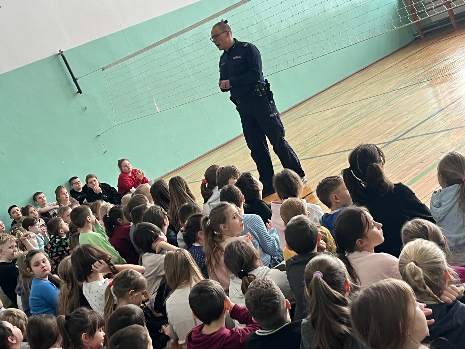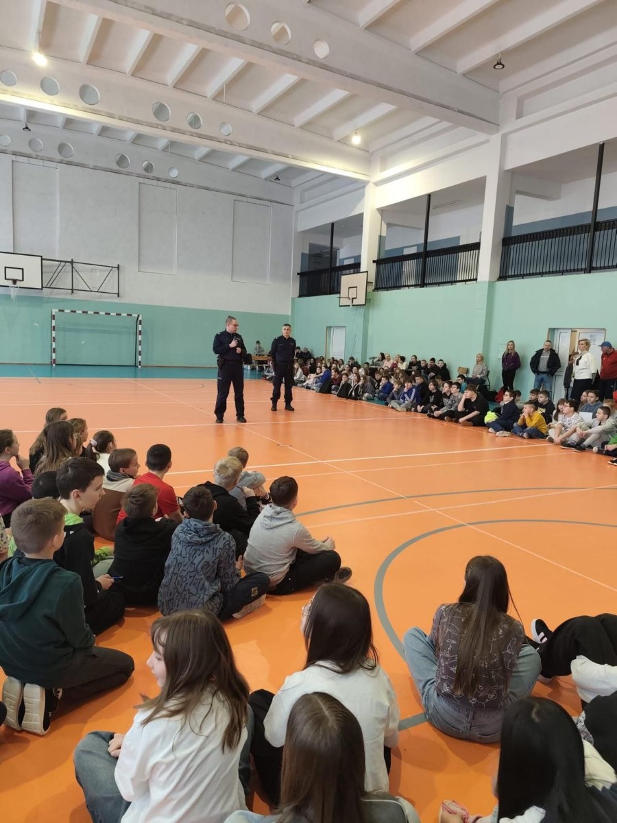 W naszej szkole odbyło się spotkanie z przedstawicielem Policji poświęcone zasadom bezpieczeństwa podczas zbliżających się ferii zimowych. Dzięki prelekcji uczniowie przypomnieli sobie, jak bezpiecznie spędzać czas w domu, na stoku, lodowisku czy w czasie zabaw na świeżym powietrzu.