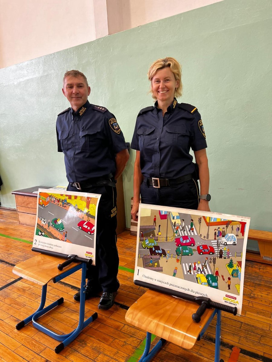 W ubiegłym tygodniu odwiedzili nas przedstawiciele Straży Miejskiej. Spotkanie było skierowane do uczniów klas pierwszych, którzy z dużym zainteresowaniem uczestniczyli w zajęciach. Funkcjonariusze opowiedzieli o swojej pracy, a także przypomnieli zasady bezpieczeństwa w drodze do szkoły i podczas zabawy.