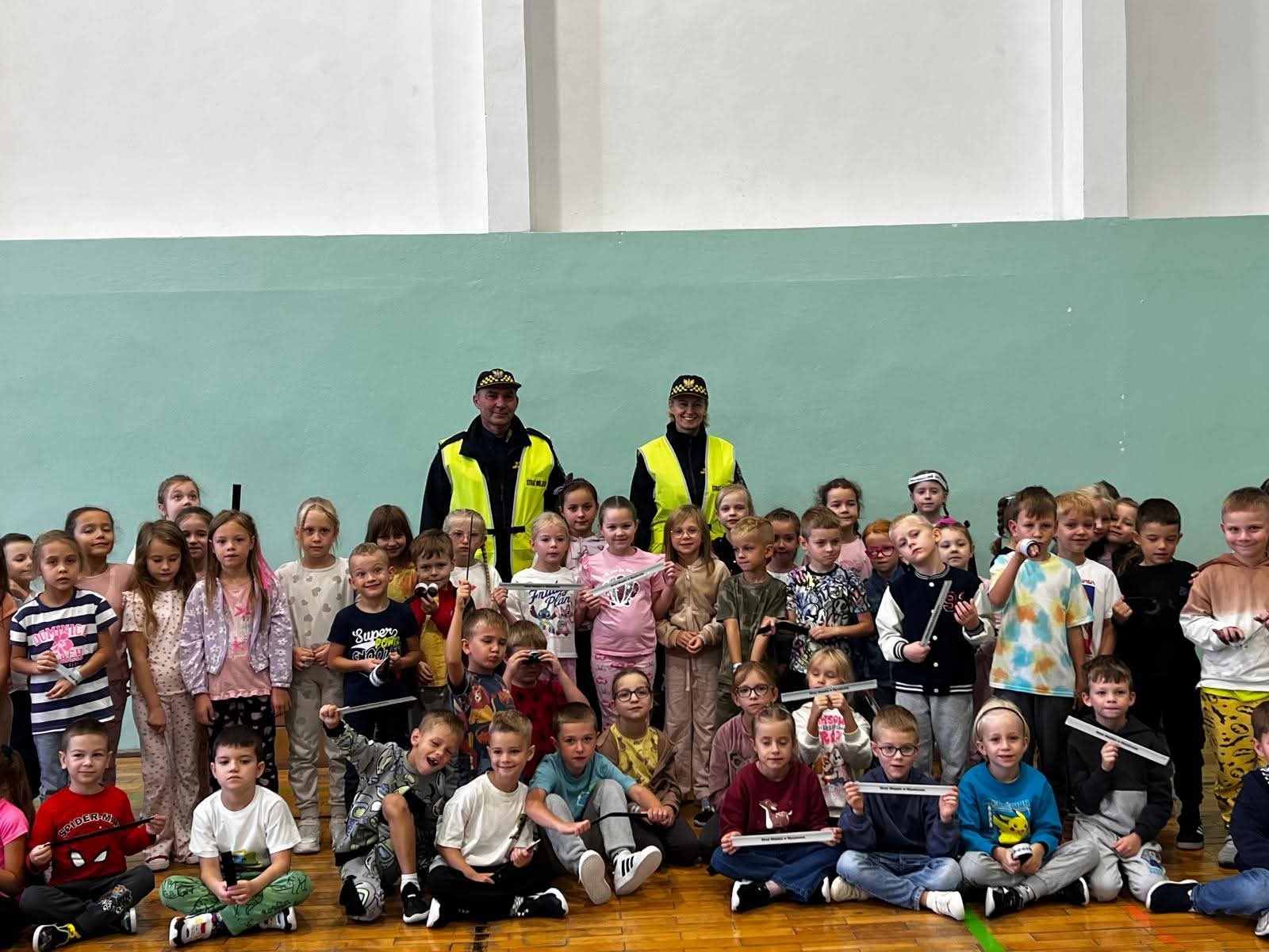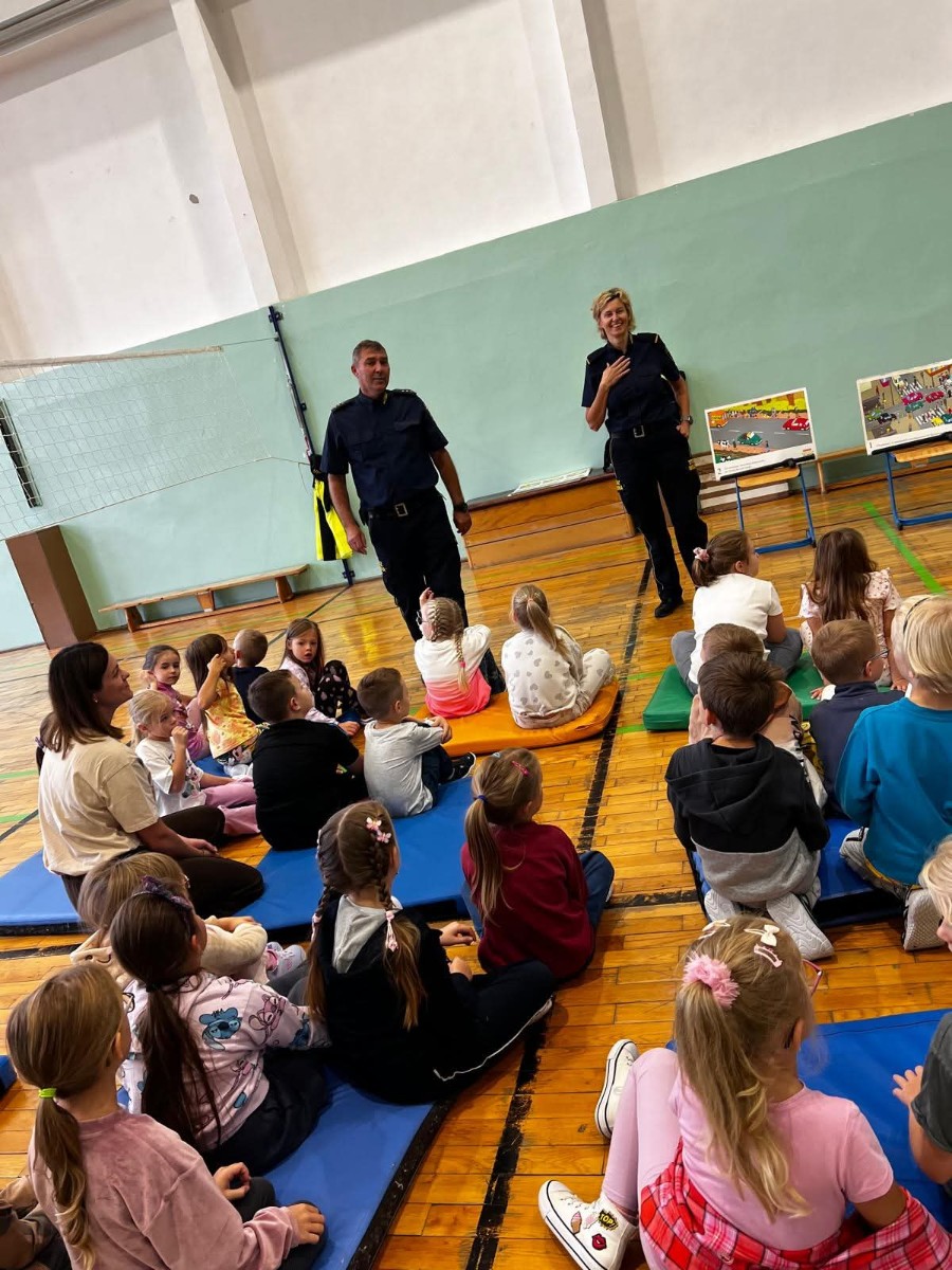 Pierwszaki chętnie odpowiadały na pytania i brały udział w rozmowie. Dowiedziały się m.in., jak bezpiecznie przechodzić przez ulicę, jak reagować w sytuacjach zagrożenia oraz do kogo zwrócić się o pomoc.