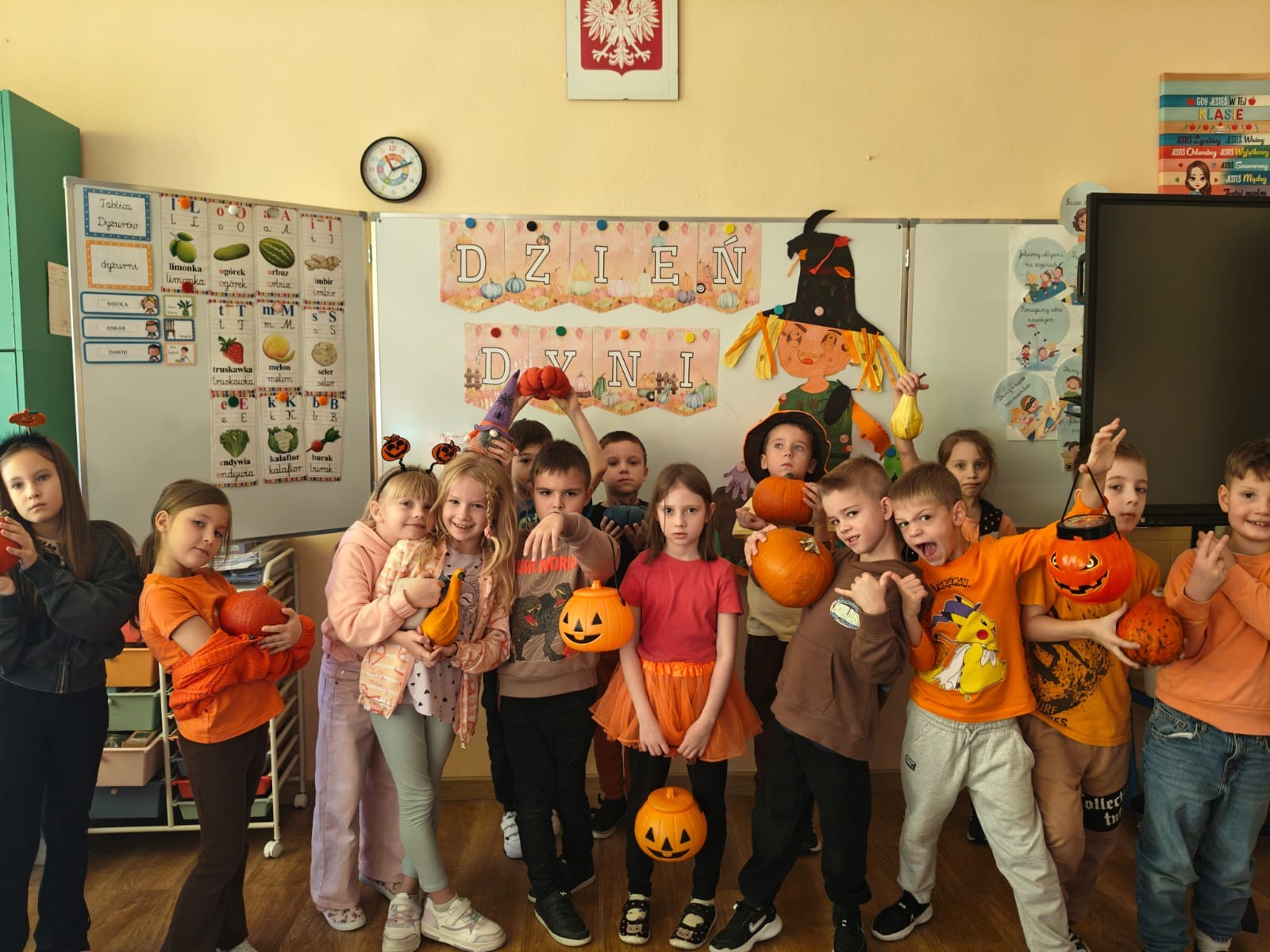 W klasach królował kolor pomarańczowy, a sale lekcyjne ozdobione były pracami plastycznymi. Uczniowie poznali ciekawostki o dyni-odmiany, wartości odżywcze i zastosowanie w kuchni.