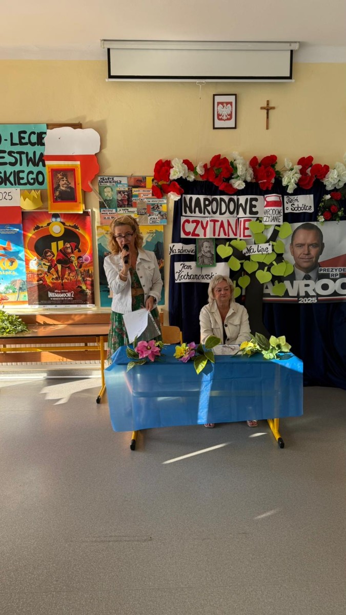 Narodowe Czytanie 2025 zostało zorganizowane również w klasach drugich. Była to inicjatywa p. Jolanty Zamory i klasy 2 b. W tym roku bohaterem spotkania czytelniczego był Jan Kochanowski. Pani Dyrektor Elżbieta Gocyła i pani wicedyrektor Małgorzata Rolka pięknie przeczytały utwory Jana Kochanowskiego: „Na zdrowie”, „Na lipę” oraz fragmenty „Pieśni świętojańskiej o Sobótce”. Uczniowie z uwagą słuchali poezji. Rozmawiali o wartościach, takich jak zdrowie, piękno przyrody, polskie tradycje i obrzędy. Następnie klasa 2 b zaprezentowała inscenizację sobótki. Spotkanie dostarczyło uczniom wielu wrażeń.