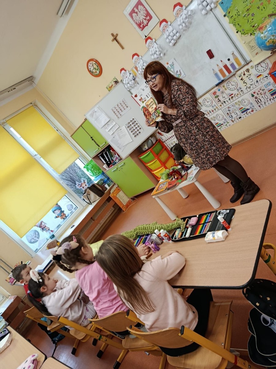 Składamy również serdeczne podziękowania pani Marcie Pardyli z Biblioteki Pedagogicznej w Myszkowie za przeprowadzenie w klasach pierwszych wyjątkowych zajęć bajkoterapii. Uczniowie mogli przenieść się w świat pełen wyobraźni, emocji i mądrości płynącej z literatury. Spotkanie nie tylko wzbogaciło ich wiedzę, lecz także stało się inspiracją do rozmów, refleksji i twórczego myślenia.