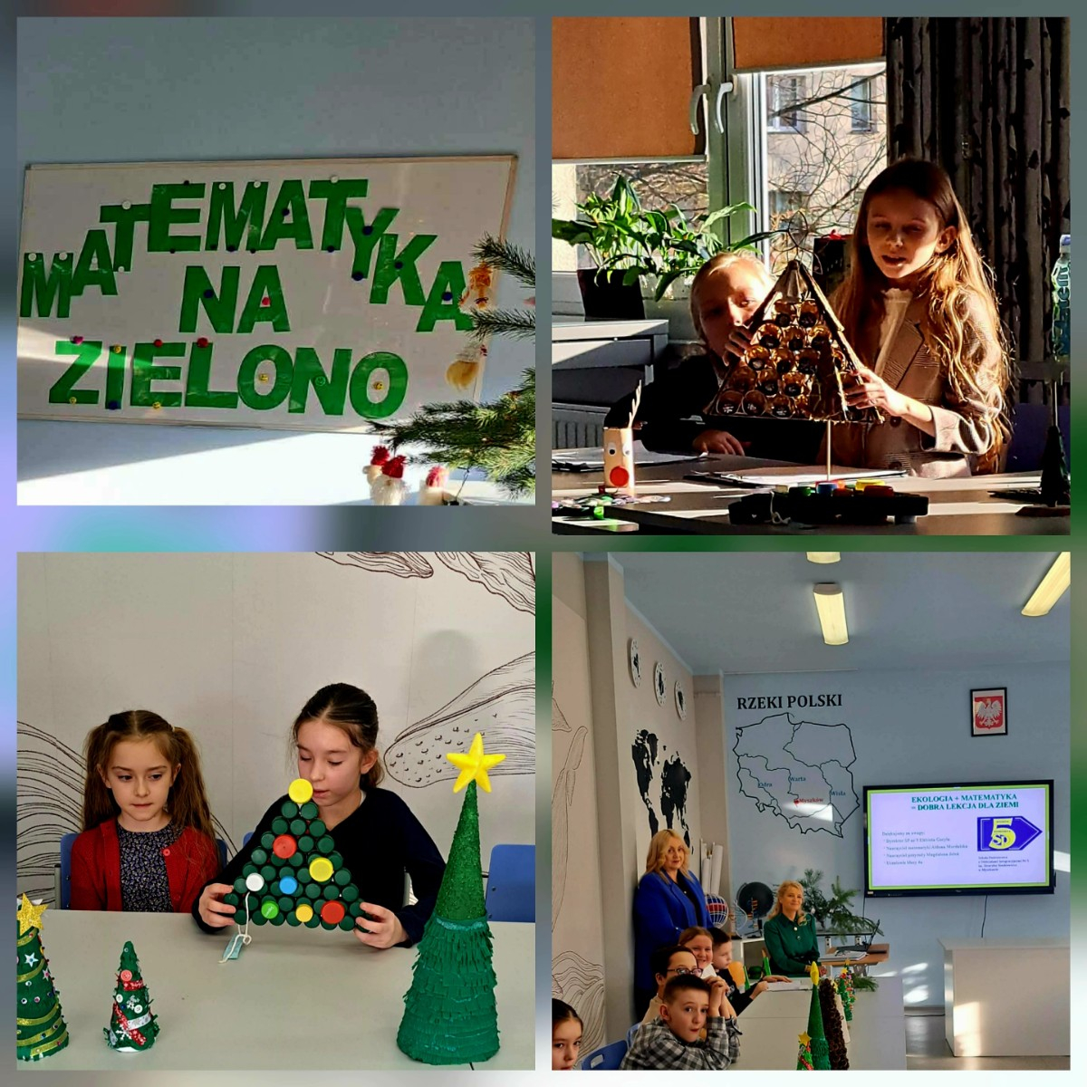 „Matematyka na zielono" to tytuł kampanii edukacyjnej mFundacji, która łączy matematykę z ekologią, pokazując, jak liczby pomagają zrozumieć zmiany klimatyczne i rolę człowieka w ochronie planety, by promować świadome, ekologiczne wybory. Z tej okazji nauczyciele: Elżbieta Gocyła (j. Polski), Aldona Mordalska (matematyka), Magdalena Jeleń (przyroda) wraz z uczniami klasy 4a zrealizowały projekt edukacyjny „O choince matematycznie i ekologicznie”
