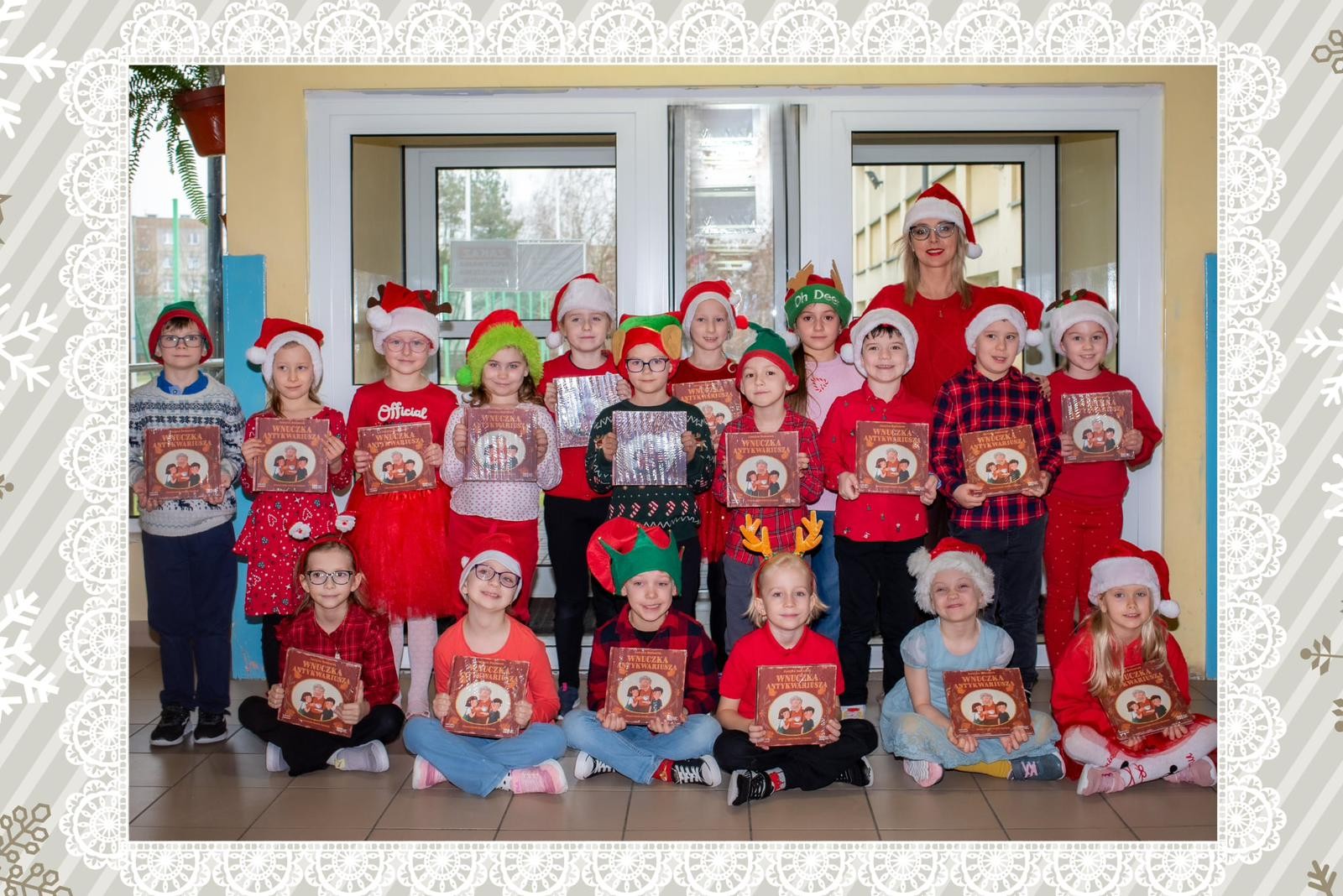 W naszej szkole już po raz kolejny przeprowadzono ogólnopolską akcję czytelniczą Ministerstwa Kultury i Dziedzictwa Narodowego oraz Instytutu Książki, w ramach której pierwszoklasiści otrzymali książkę „Wnuczka antykwariusza” autorstwa Justyny Bednarek. Inicjatywa jest częścią programu „Mała książka -wielki człowiek”, mająca na celu promocję czytelnictwa wśród najmłodszych uczniów. Podczas zajęć nauczyciele biblioteki opowiedzieli dzieciom o znaczeniu książek i czytania oraz o tym, jak ważne są historie rodzinne. Wydarzenie odbyło się w atmosferze zbliżających się Świąt Bożego Narodzenia i było połączone z wręczeniem dzieciom świątecznego prezentu -Wyprawki Czytelniczej.